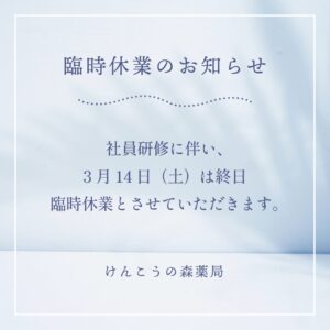 3月14日(土)は臨時休業です。